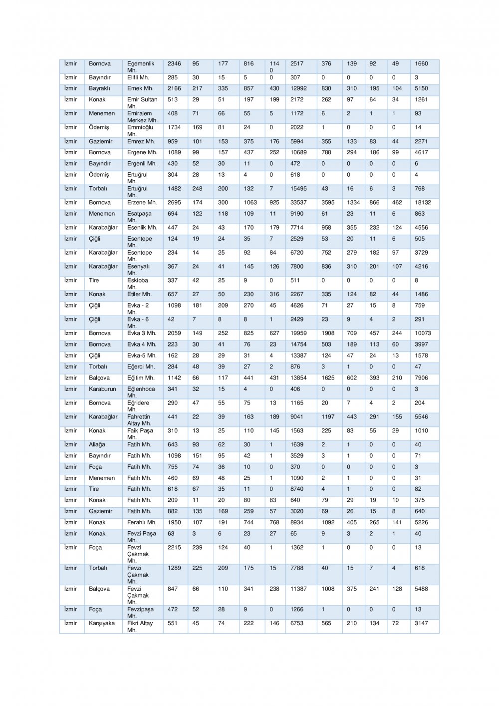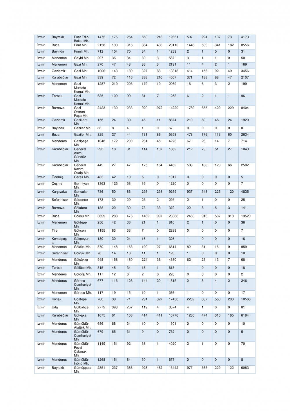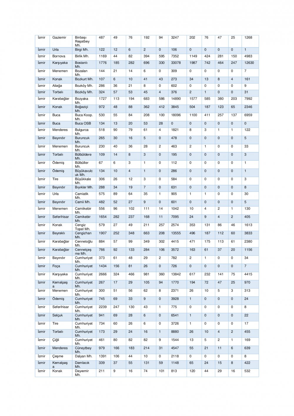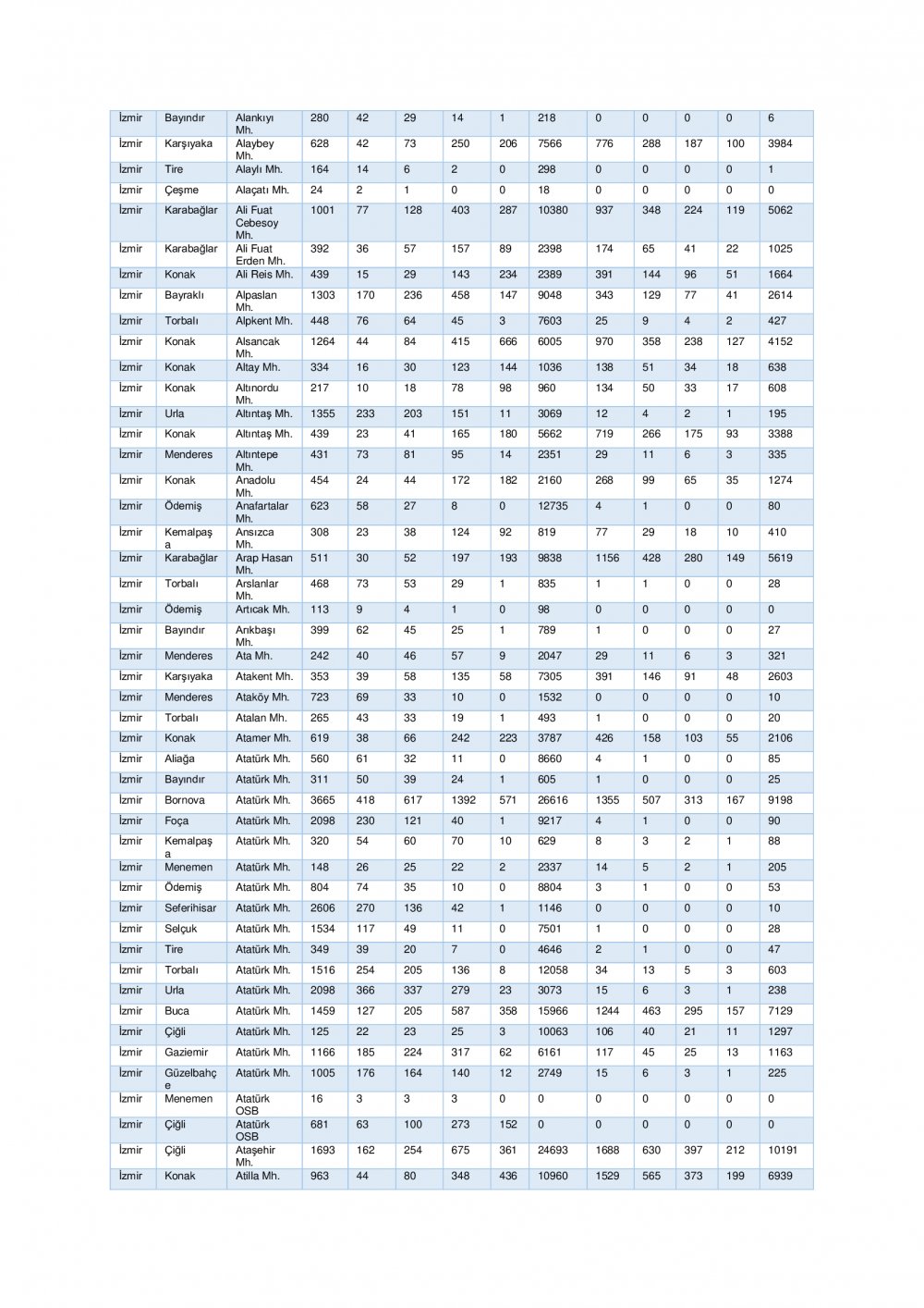“İzmir ili ihtiyaç analizi ve kapasite geliştirme kararları için genişletilmiş senaryo” başlığı altında 7 şiddetinde meydana gelen deprem sonrası tahmini yaralı ve can kaybı ile hasarlı ve yıkık bina istatistikleri ile ilçe bazında tahmini yaralı ve can kaybı ile hasarlı ve yıkık bina istatistiklerine yer verildi.