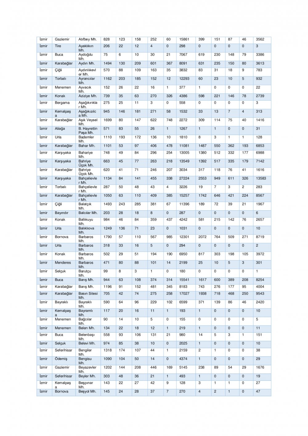 Çalışmada mahalle bazında meydana gelen hasar ve can kaybı istatistikleri de yer aldı.