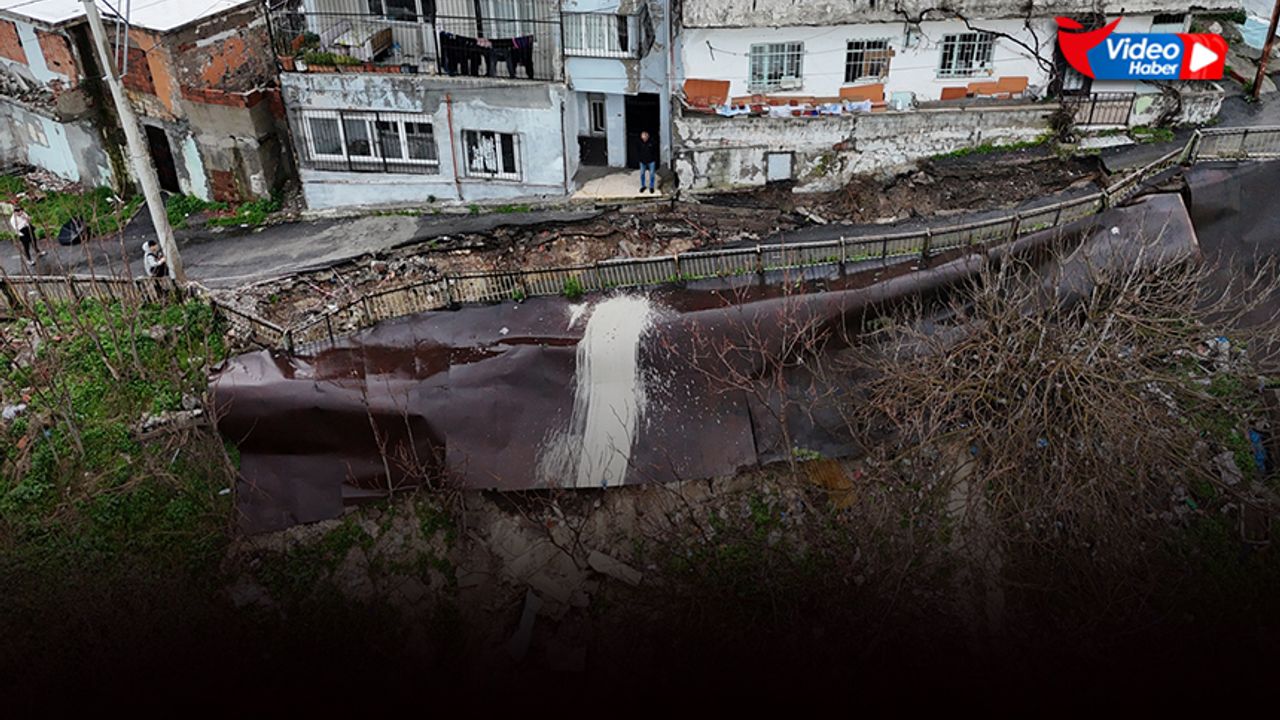 Konak ilçesi Ferahlı Mahallesi'nde, 3505 Sokak'taki asfalt yolun bir kısmı, zeminin yağış sonucu yumuşaması ile çöktü.