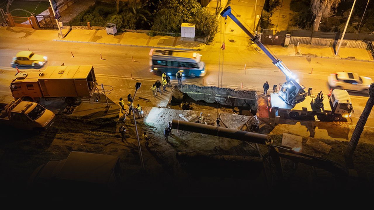 İzmir Büyükşehir Belediyesi İZSU Genel Müdürlüğü, Güzelbahçe ve Narlıdere’ye içme suyu sağlayan Narlıdere Limanreis Mahallesi Mithatpaşa Caddesi ile Hasan Ali Yücel Sokak kavşağında 800 mm çaplı ana iletim hattında meydana gelen arızayı gidermek için gece boyunca seferber oldu. Güzelbahçe ilçesinin tamamı ile Narlıdere Limanreis Mahallesi’nde dün başlayan ve bugün saat 10.00’a kadar süreceği duyurulan su kesintisi programı beş saat öne çekildi.