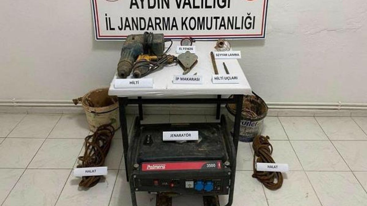 Aydın İl Jandarma Komutanlığına bağlı ekipler, Güzelçamlı Mahallesi'ndeki birinci derece arkeolojik SİT alanı içerisinde tarihi eser aramak amacıyla izinsiz kaçak kazı yapıldığını tespit etti. Harekete geçen jandarma, kaçak kazı yapan M.A., M.Ö., M.K. ve C.Ç.'yi suçüstü yakaladı. Şüphelilerin kaçak kazıda kullandıkları belirlenen jeneratör, hilti, matkap, ip makarası, çeşitli miktarda hilti ucu, halat ve seyyar kablo ele geçirildi.