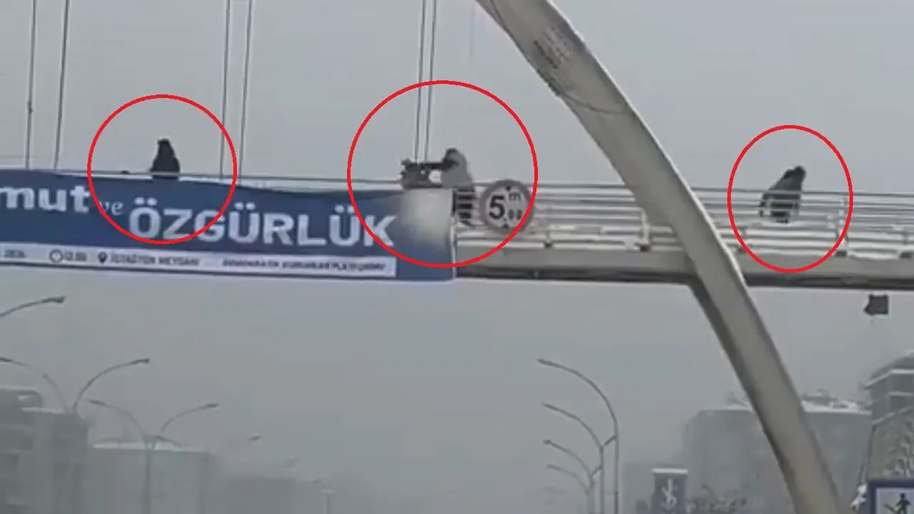Çevredeki bir kişi tarafından cep telefonu kamerasıyla alınan kayıtta, üst geçitteki çocukların yanına giden kişinin çocukları yumruk atarak yere düşürüp, ardından tekmelediği görüldü.