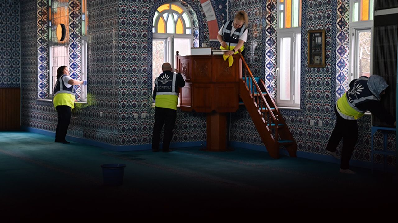 Belediye ekipleri, program dahilinde camilerin halılarını süpürüp hijyenik hale getirirken; kapı ve camları özenle siliyor. Mihrap, minber ve kürsüler ile ayakkabılıklar da titizlikle temizleniyor. Çalışmalar, 5’er kişilik ekipler tarafından koordineli bir şekilde sürdürülüyor.