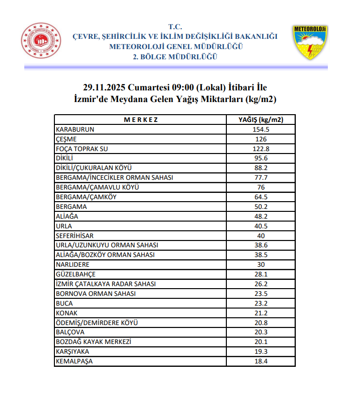 İŞTE İLÇE İLÇE METREKAREYE DÜŞEN YAĞIŞ MİKTARI
