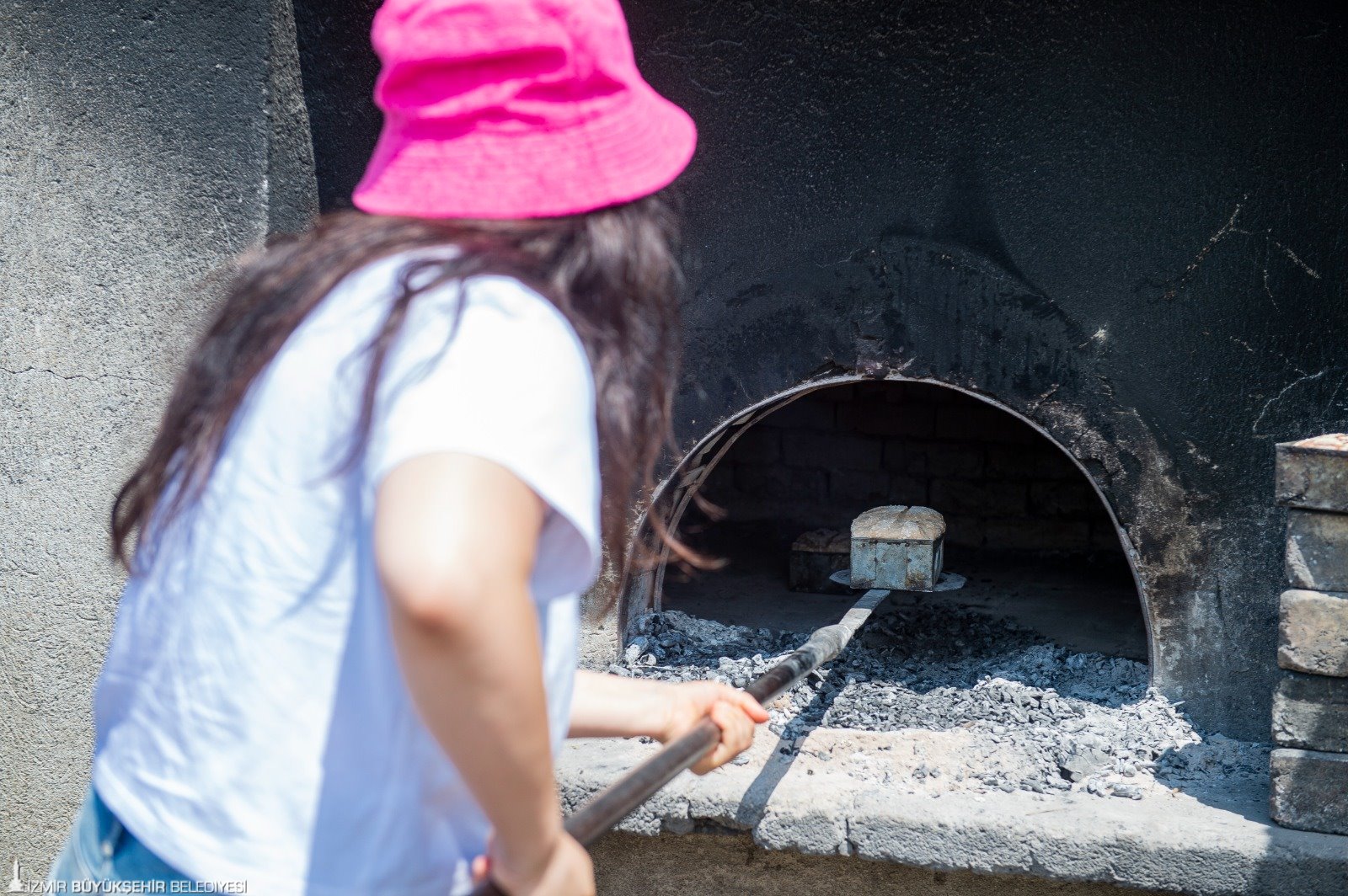 Öğrenciler, kuraklıkla mücadelede önemli bir yeri olan ve besleyici özellikleriyle Türkiye’de ilgi gören karakılçık buğdayının sofraya gelene kadarki tüm süreçlerini uygulamalı inceleme imkânı buldu. Menderes’teki hasadın ardından öğrenciler topladıkları karakılçık buğdayını İzmir Büyükşehir Belediyesi’nin yenileyerek yeniden hizmete aldığı Ödemiş Demircili Köyü Tarımsal Kalkınma Kooperatifi’nin un değirmenine götürdü. Burada taşlı tip değirmenlerde karakılçık buğdayı una dönüştürüldü. Öğrenciler unu yine Demircili Köyü’ndeki yerel üreticilerin ellerinde ekşi mayayla buluşturarak karakılçık ekmeklerini hazırladı. Geleneksel taş fırında ekmeği pişiren öğrenciler hep birlikte tadına baktı.