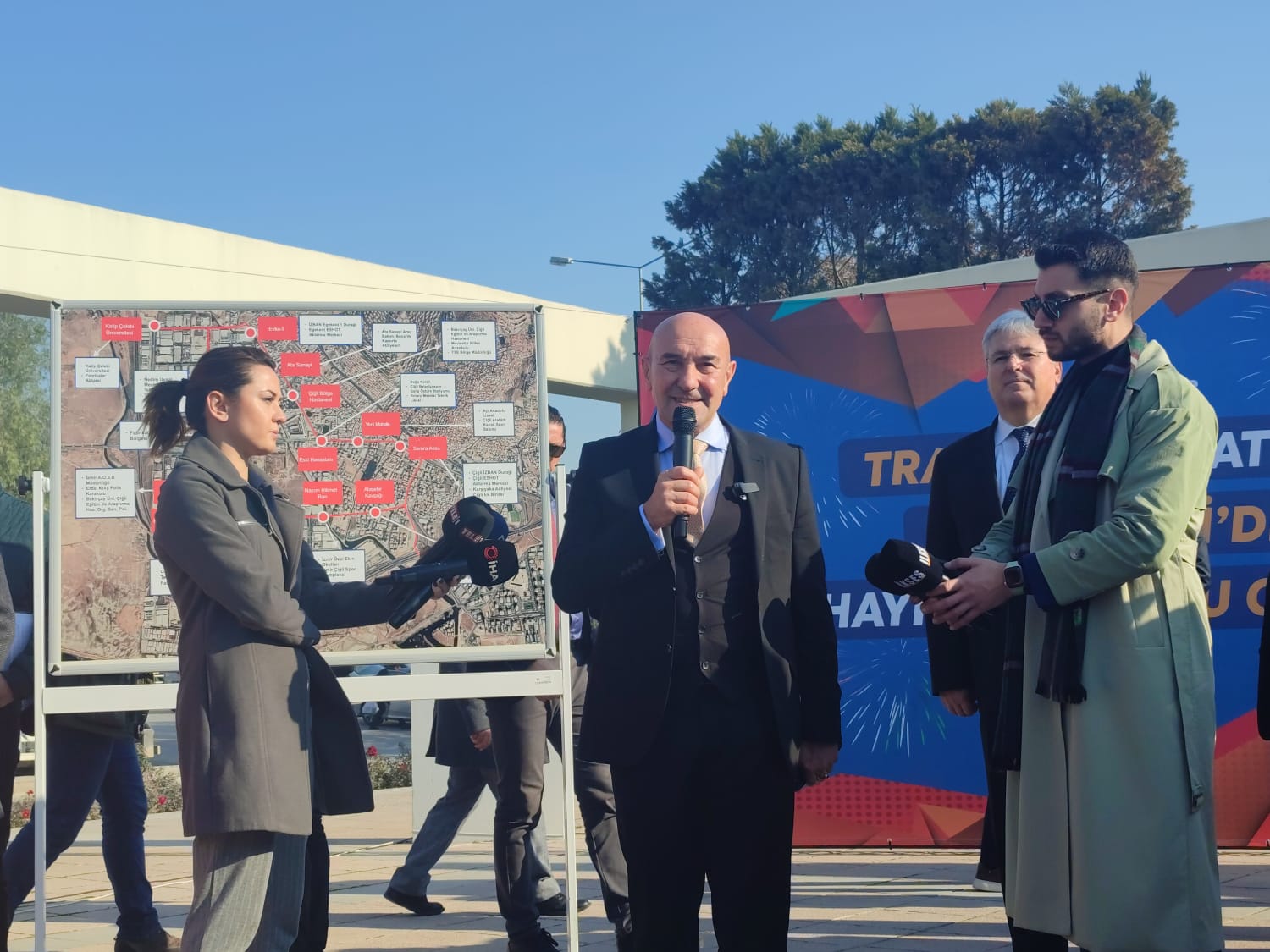 Test sürüşü sonrası açıklamada bulunan Başkan Soyer şunları kaydetti: Herkese ayrı ayrı teşekkür ediyorum. Gerçekten bizim için çok anlamlı bir gün. Bunu İzmir'e yeni yıl armağanı olarak vermek istedik ve arkadaşlarım bunu yetiştirmeyi başardılar. Tam güzergah üzerinde bir tur atacak hale getirdiler. Muhtarlarımızla beraber ilk turu yaptık. Belki de onlarca yıl bu güzergahta yaşayan insanlara konfor, estetik ve rahatlık sunacak bu hat bugün ilk defa kendini göstermiş oluyor. Raylı sistemler hem daha estetik, hem daha konforlu, hem daha ucuz hem de daha temiz ulaşım demek. Dolayısıyla bizim ulaşımdaki temel hedefimiz lastik tekerlekleri bir tarafa bırakmak ve raylı sistemleri çok daha etkin ve yaygın hale getirmek. Bu nedenle bu şehri çok yoğun bir şekilde raylı sistemlerle buluşturmaya devam edeceğiz. Gaziemir-Karabağlar Metrosu ile ilgili olarak hem Karabağlar hem de Gaziemir Belediye Başkanlarımıza ilk sunumu gerçekleştirdik. Önümüzdeki günlerde muhtarlarımızla ve meclis üyelerimizle de geniş katılımlı bir toplantı yaparak Karabağlarlı ve Gaziemirli vatandaşlarımıza sunum yapacağız, güzergahları göstereceğiz. Aynı şekilde Halkapınar-Kemalpaşa Metrosu ile ilgili çalışmalar devam ediyor. Kısacası İzmir'i demir ağlarla örmeye devam edeceğiz. İçiniz rahat olsun; bütün Türkiye'nin bu kasvetli ortamında, bu ekonomik krizin derinleştiği, enflasyonun yükseldiği, hayat pahalılığının tırmandığı günlerde İzmir Büyükşehir Belediyesi yatırımlarına kesinti vermeden, hiç bir şekilde durmadan devam edecek. İzmirli'ye hizmet etmeye devam edeceğiz. Bu tarihi ana tanıklık ederken bizi yalnız bırakmadığınız için hepinize tekrar teşekkür ediyorum. Yeni yılınız kutlu olsun" dedi.