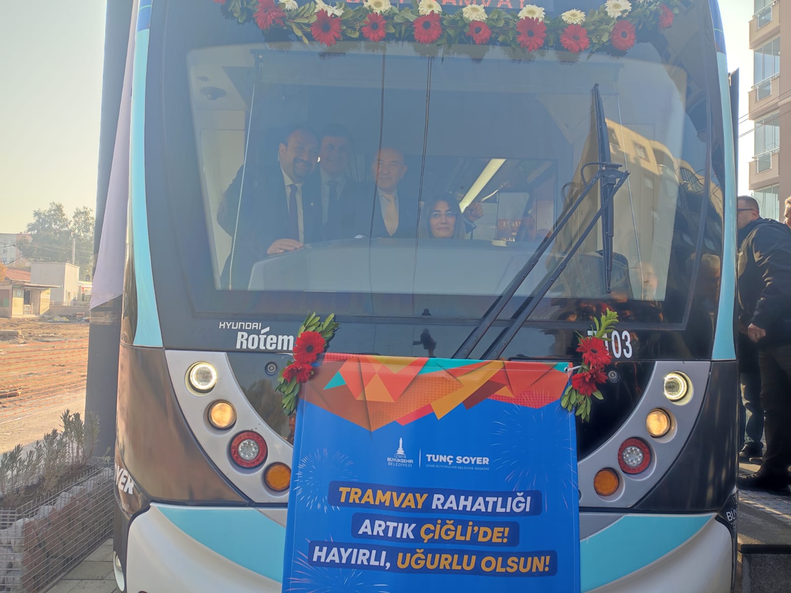 Halil İbrahim GÜLER/ GÜNDEME BAKIŞ- İzmir Büyükşehir Belediyesi önemli raylı sistemp rojelerinden Çiğli Tramvay Hattı'nın Karşıyaka Tramvayı'na bağlantısının ilk test sürüsü gerçekleşti.Büyükşehir Belediye Başkanı Soyer Karşıyaka Belediye Başkanı Cemil Tugay ve Çiğli Belediye Başkanı Utku Gümrükçü de Çiğli Tramvay Hattı’nın ilk test seferine katıldı.