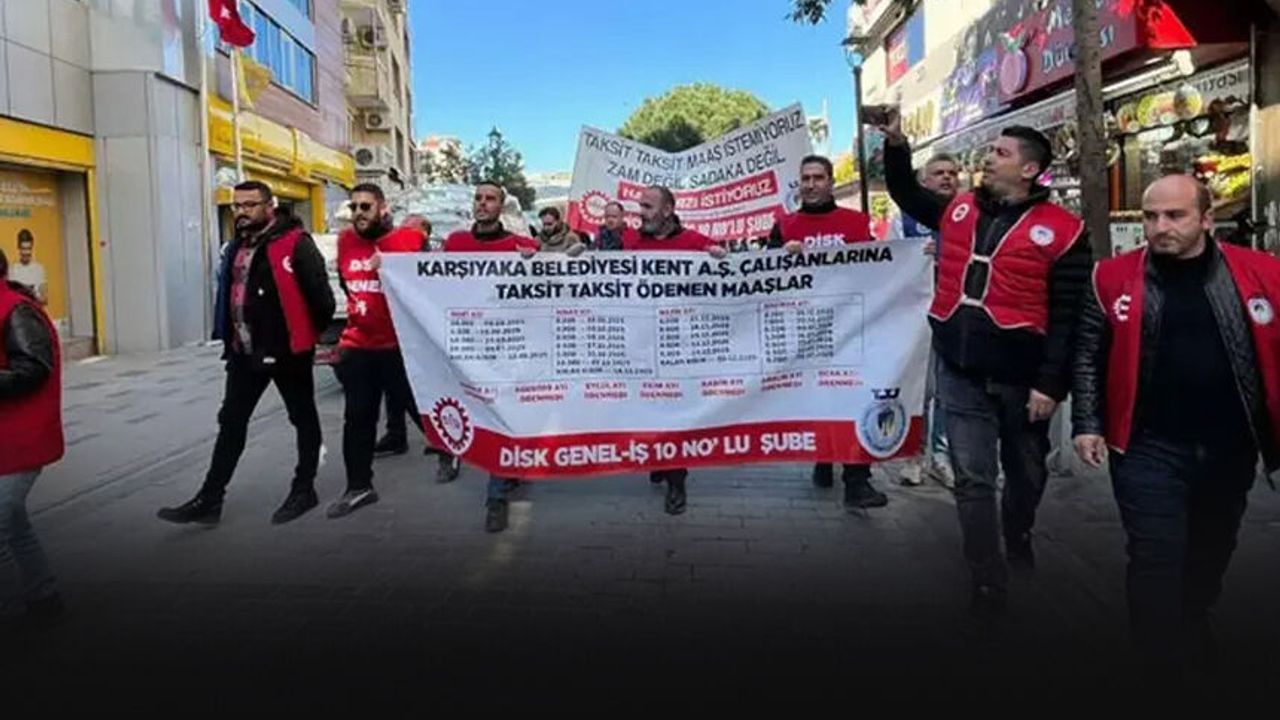 Karşıyaka Belediyesi iştiraki Kent A.Ş.'de çalışan işçiler, 7 aydır maaşlarını ve toplu sözleşmeden doğan farklarını alamadıkları gerekçesiyle 15 gün önce başladıkları eylemlerini sürdürüyor. Karşıyaka Çarşısı'nda yürüyüş yapıp, halka bildiri dağıtan işçiler adına konuşan DİSK/Genel-İş İzmir 10 No'lu Şube Sekreteri Güntay Kıray, 'Kent A.Ş. bünyesinde çalışan 540 işçiyiz. Buranın emekçileriyiz. Biz bu şehir için hizmet ediyoruz ama emeğimizin karşılığını alamıyoruz. 7-8 aydır maaşlarımız ödenmiyor. En son temmuz ayından 10 bin TL ödendi. Dayanacak gücümüz kalmadı' dedi.