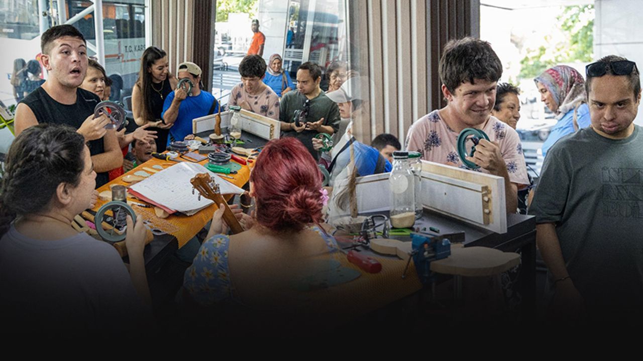 Bu kapsamda; merkez öğrencileri ve velileri, Galeri Alt’ta açılan Sürdürülebilir Müzik Aletleri Sergisi’ni ziyaret etti. Karşıyaka Belediyesi'ne bağlı Mahmure Handan Hanım Müzik Aletleri Yapım Atölyesi katılımcıları tarafından atık ve geri dönüştürülmüş malzemelerle hazırlanan eserleri ilgiyle inceleyen özel bireyler, müziğin birleştirici gücüyle keyifli anlar yaşadı. Atölye eğitmeni Burçin Bayar Babaoğlu’nun sunduğu mini müzik dinletisi de sergi ziyaretine renk kattı. Doğaya duyarlı yaklaşımı ve yaratıcı üretim anlayışıyla dikkat çeken sergi, 15 Ağustos’a kadar Karşıyaka Belediyesi ana hizmet binası giriş katında ziyaret edilebilecek.