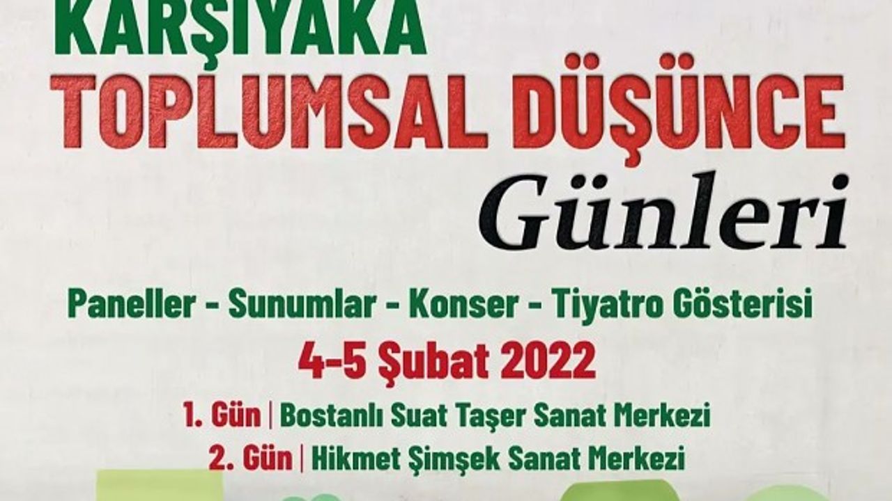 Toplumsal Düşünce Günleri’nin ikinci gün programına Hikmet Şimşek Sanat Merkezi ev sahipliği yapacak. Program şiirli söyleşilerle saat 11.30’da başlayacak. Karşıyaka’nın Şiiri başlıklı programa şair-yazar Hidayet Karakuş, gazeteci-şair Ünal Ersözlü ve şair-yazar Veysel Çolak katılacak. Programın ikinci kısmında yaklaşık iki yıldır devam eden Covid-19 pandemisi alanında uzman kişilerce her açıdan ele alınacak. “Her Açıdan Pandemi Dönemi” başlıklı panele Başkent Üniversitesi İktisat bölümünden Prof. Dr. Ahmet Şahinöz, Gazi Üniversitesi Enfeksiyon Hastalıkları bölümünden Prof. Dr. Esin Davutoğlu Şenol ve gazeteci-yazar-televizyoncu İrfan Değirmenci konuk olacak. Akşam saat 20.00’da Ankara Sanat Tiyatrosu “Bir Anarşistin Kaza Sonucu Ölümü” adlı tiyatro gösterisini sergileyecek.