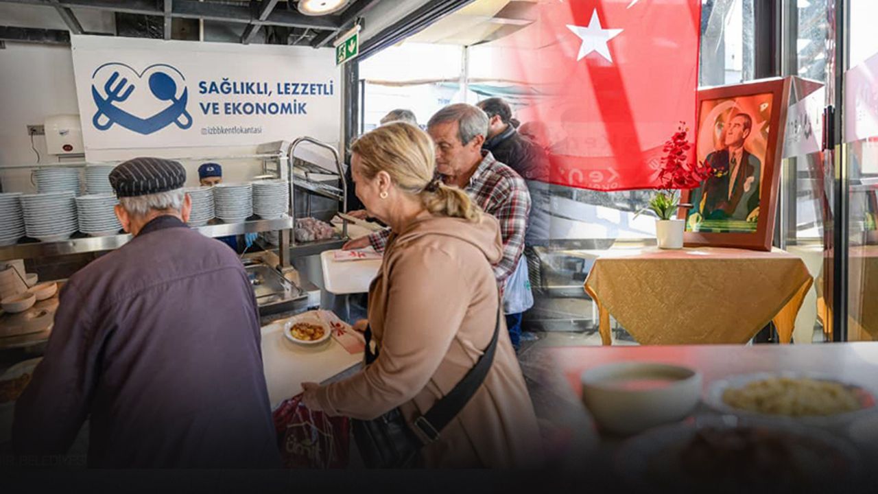 Türkiye Cumhuriyeti’nin kurucusu Ulu Önder Gazi Mustafa Kemal Atatürk’ün vefatının 87’nci yılında düzenlenen anma etkinlikleri kapsamında İzmir’de önemli ve anlamlı bir uygulamaya imza atıldı. İzmir Büyükşehir Belediyesi’ne bağlı olarak beş noktada faaliyet gösteren Kent Lokantaları’nda 10 Kasım Atatürk’ü Anma Günü’nde ücretsiz yemek hizmeti sunuldu. Kemeraltı, Çiğli, Karabağlar, Menemen ve Aliağa şubelerinde rutin olarak çıkarılan 2 bin kişilik yemek 10 Kasım için 500 ilaveyle toplam 2 bin 500 kişilik üretildi. Lokantalara gelen yurttaşlara şehriye çorbası, püreli tas kebabı, bulgur pilavı ve şambaliden oluşan menü ikram edildi.