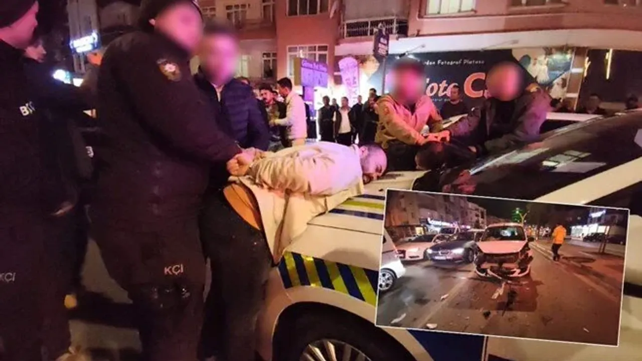 Aksaray'da maddi hasarlı kaza yapan alkolü sürücü, 2 yakınıyla birlikte kimlik isteyen polis ekiplerine direndi.