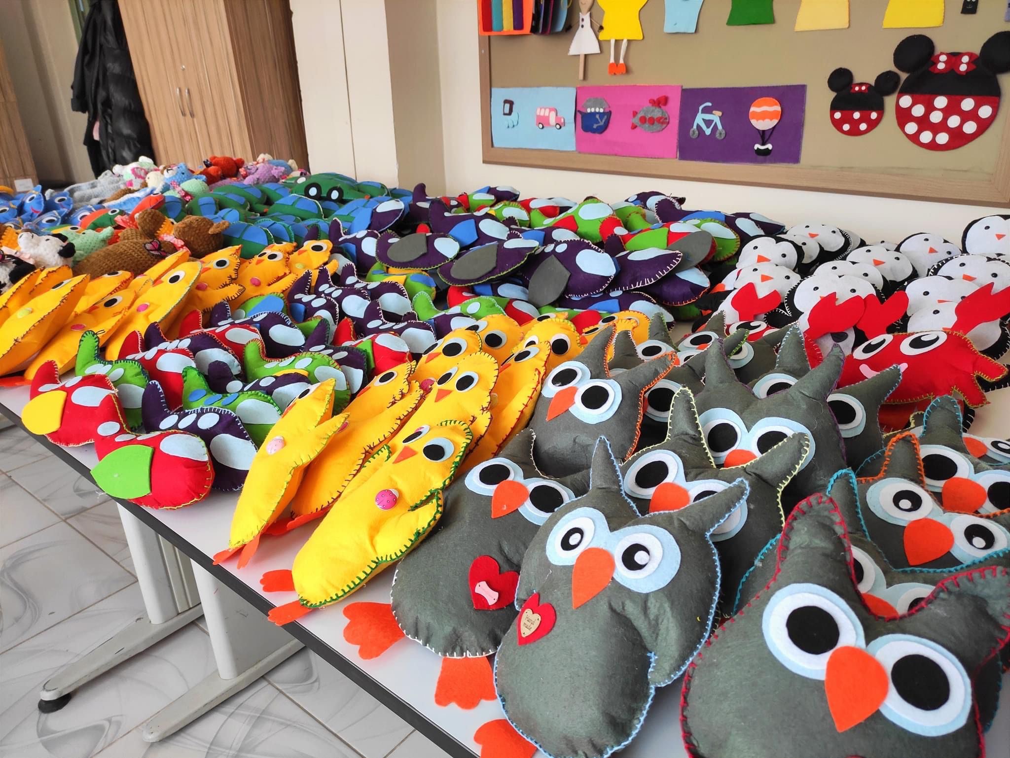 Depremin ağır travmasına maruz kalmış çocuklar için psikolojik yönden büyük önem taşıyan oyuncaklar, Kınık Mesleki ve Teknik Anadolu Lisesi Çocuk Gelişimi Bölümü öğrencileri ve öğretmenleri tarafından üretilmeye başlandı.