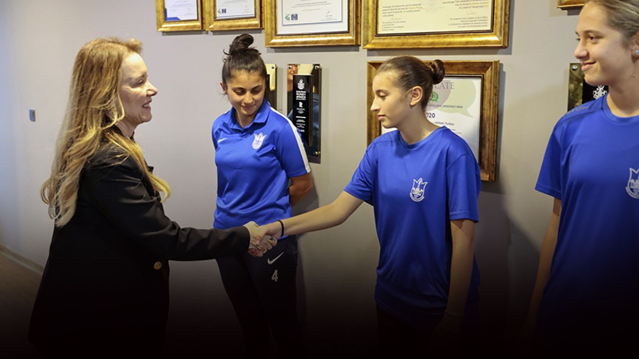 Konak Belediye Başkanı Nilüfer Çınarlı Mutlu, İngiltere’de gerçekleştirilecek UEFA Gelişim Turnuvası’nda Türkiye’yi temsil edecek olan U15 Kız Milli Takımı’na seçilen Konak Belediyespor’dan Ecrin Ela Güllü, Duru Çınar ve Azra Dede’yi makamında ağırladı. Başkan Mutlu, 18 kişilik U15 Kız Milli Takımı kadrosuna en çok futbolcu gönderen kulüp olarak Konak’a milli gurur yaşatan Konak Belediyespor’un genç yeteneklerini tebrik ederek 21 Kasım’da başlayacak olan turnuvada başarılar diledi. Konak Belediyespor Yönetim Kurulu Başkanı Ersan Odaman, Yönetim Kurulu Üyesi Çağdaş Türkyolu, Takım Antrenörü Varol Karul ve Yardımcı Antrenör Didem Taş da yer aldığı buluşma genç futbolcuların turnuva öncesinde motivasyonlarını artırarak onlara moral verdi.