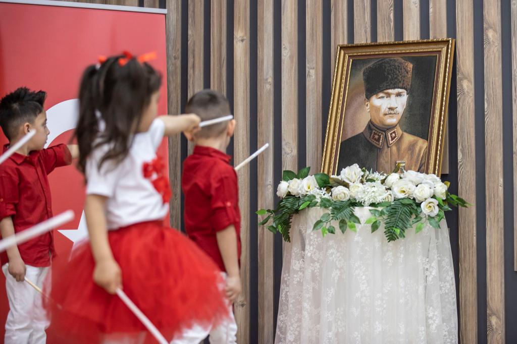 Kırmızı beyaz elbiseleri ve Atatürk baskılı tişörtleriyle sahnedeki yerlerini alan çocuklar, 23 Nisan kutlamaları için haftalardır hazırlandıkları gösterilerini sergilediler. Sevimli halleriyle gönülleri fetheden 3-6 yaş arasındaki minikler, gösterilerine İstiklal Marşı’yla başladı. İzleyenlerden büyük alkış alan çocuklar, okudukları 23 Nisan temalı şiirlerle de 23 Nisan Ulusal Egemenlik ve Çocuk Bayramı’nın derin anlamını bir kez daha hatırlattı. Çocuk şarkılarını dans koreografileriyle birleştirerek sevimli görüntüler oluşturan minikler, “Atatürk’ün Çocukları” şarkısında Mustafa Kemal Atatürk’ün fotoğrafını göstererek ailelerini hem gururlandırdı hem de duygu dolu anlar yaşattı.