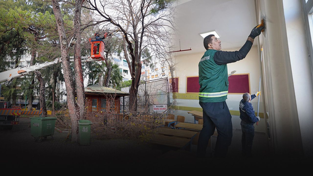 Yarıyıl tatilinin başlamasının ardından kolları sıvayan Konak Belediyesi ekipleri, okullardaki fiziki şartları iyileştirmek için harekete geçti. Öğrencilerin tatilde olduğu günleri değerlendiren Fen İşleri ile Park ve Bahçeler Müdürlükleri, dış cephe boyasından asfalt yenilemeye, boya badanadan ağaç budamaya, okulların ihtiyacı olan bakım ve onarımı üstlendi. Çalışma kapsamında, Nuri Öz İlkokulu’nun dış cephesi, Barbaros Hayrettin Paşa Ortaokulunun da koridor ve sınıfları boyandı. Tertemiz ve hijyenik bir kullanım imkanı sağlayan boyama işlemi ile çocukların daha sağlıklı şartlarda eğitim almalarına imkan tanındı. Sarıkamış İlkokulunun bahçesinde de asfalt kazıma ve yenileme çalışması gerçekleştirildi. Yenilenen asfalt zemin üzerine uygulanacak çizim ile alanda basketbol sahası oluşturulacak ve çocukların bahçeyi daha işlevsel kullanması sağlanacak. Kestelli Şerife Eczacıbaşı Ortaokulu bahçesinde ise bordür, parke ve asfaltlama işi yapılacak. Tatil boyunca devam edecek çalışmalar kapsamında, projesi tamamlanan okullarda bakım, onarım ve yenileme çalışmaları gerçekleştirilecek.