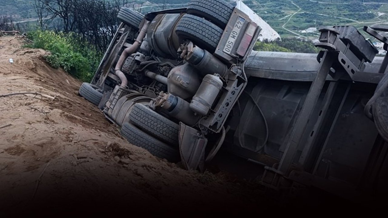 Dereuzunyer Mahallesi'ndeki orman kesim alanı mevkisinde, İsmail A. (46) idaresindeki 42 GM 500 plakalı kamyon, sürücünün direksiyon hakimiyetini kaybetmesi sonucu şarampole devrildi.