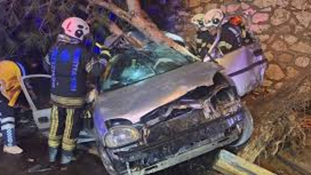 Çarpmanın etkisiyle araçta sıkışan Demir, itfaiye ekiplerince bulunduğu yerden çıkarıldı.