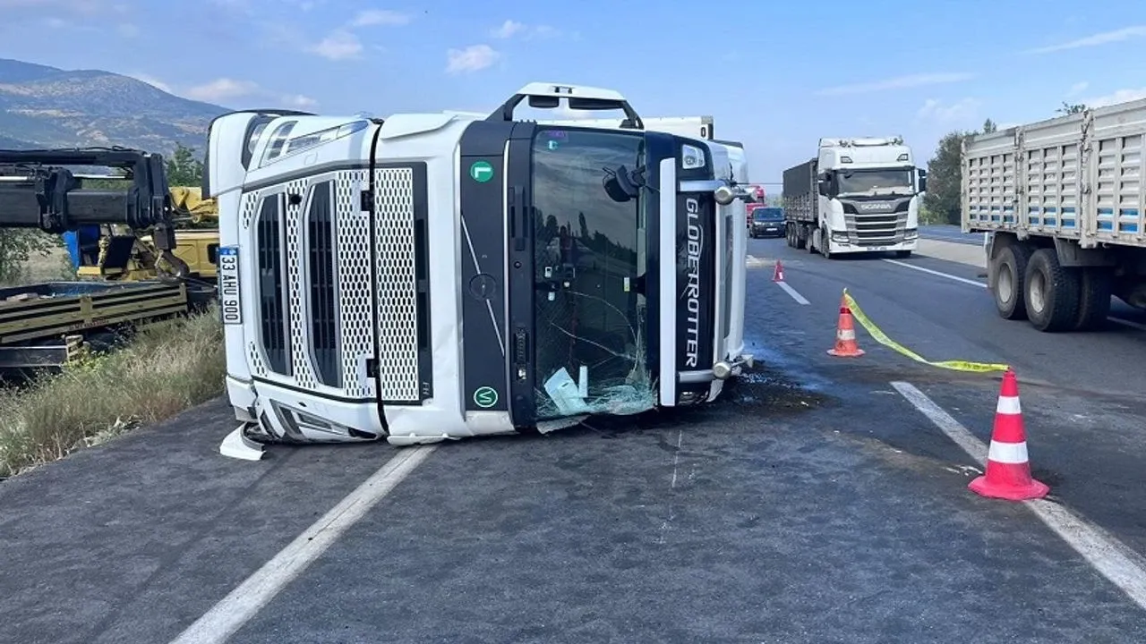 A.A. (26) idaresindeki 63 YP 400 plakalı tır, Eber köyü mevkisinde şarampole devrildi.