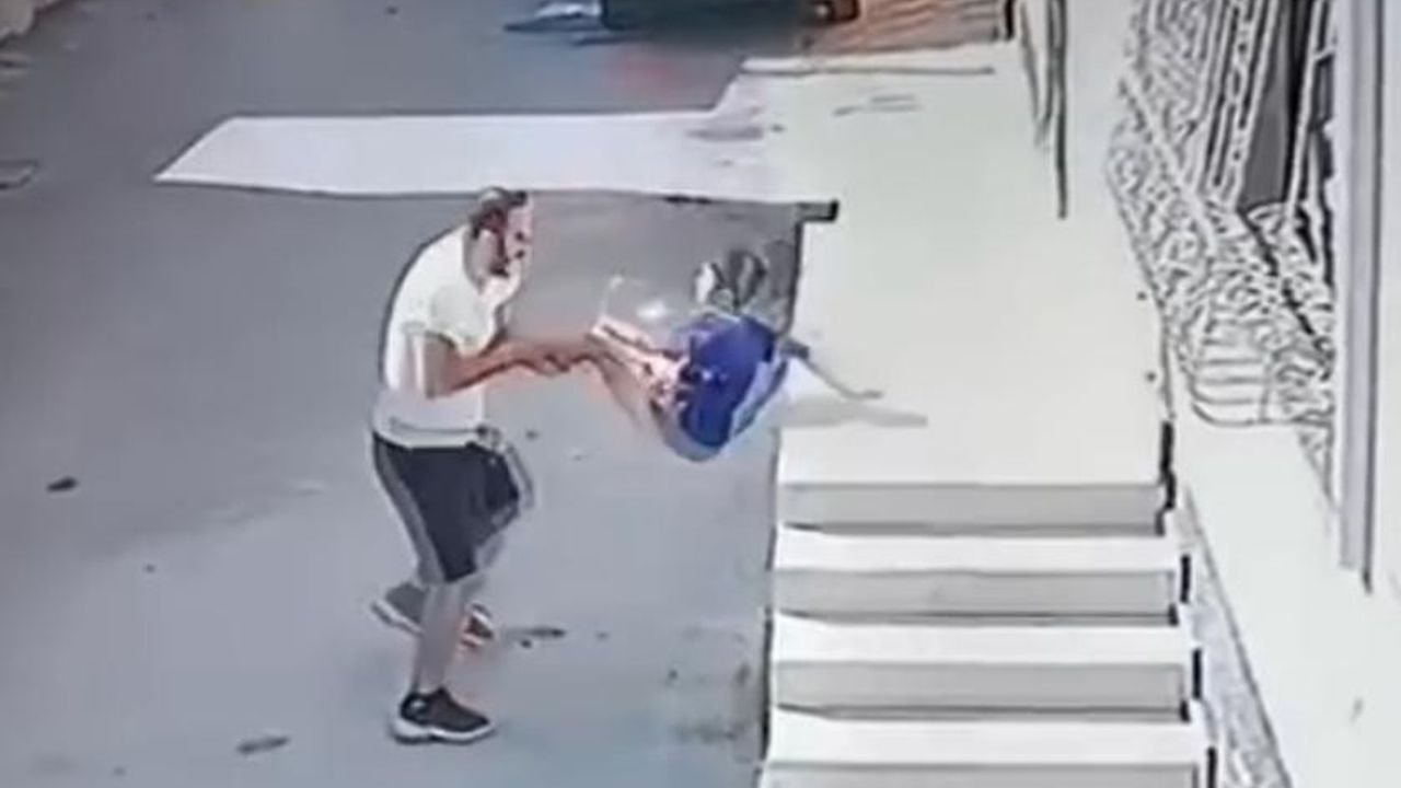 Takip eden kişi yakaladığı çocuğun ayak bileğinden tutup, başına tokat attıktan sonra savurarak 1,5 metre yükseklikten yere fırlattı. Yerde hareketsiz kalan çocuk ağlamaya başlarken, şüpheli olay yerinden kaçtı.