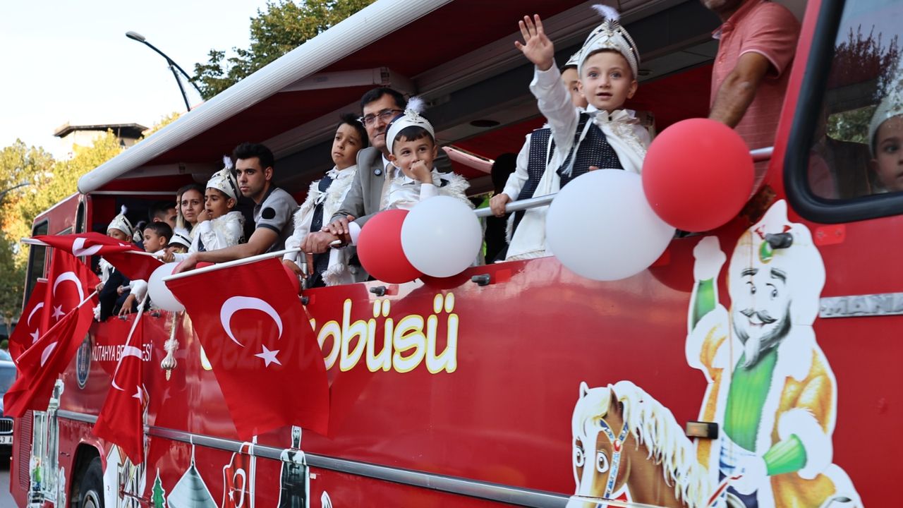 Sünnet çocukları ve aileleri, kortej eşliğinde belediyeye ait üstü açık otobüs ve araçlarla şehir turu attı.