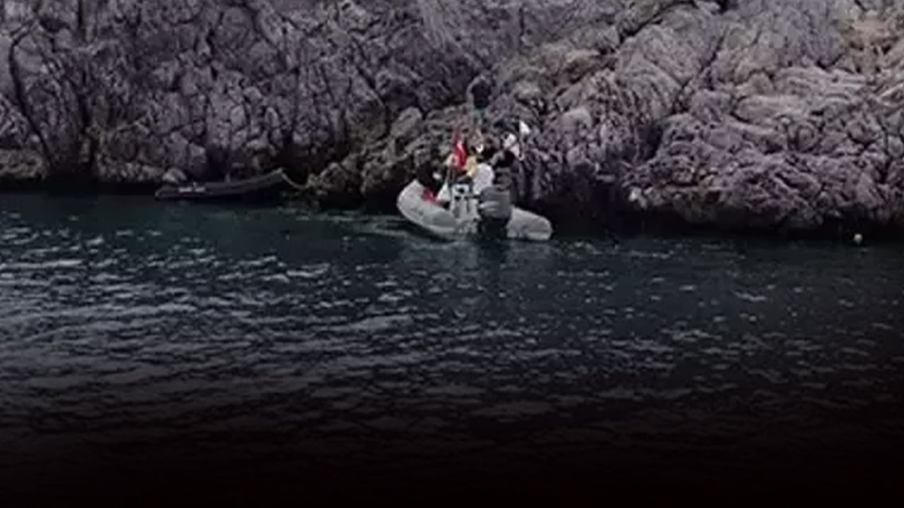İçerisinde 4 kişinin bulunduğu 7 metre uzunluğundaki lastik bot, henüz belirlenemeyen nedenle kayalıklara çarptı.