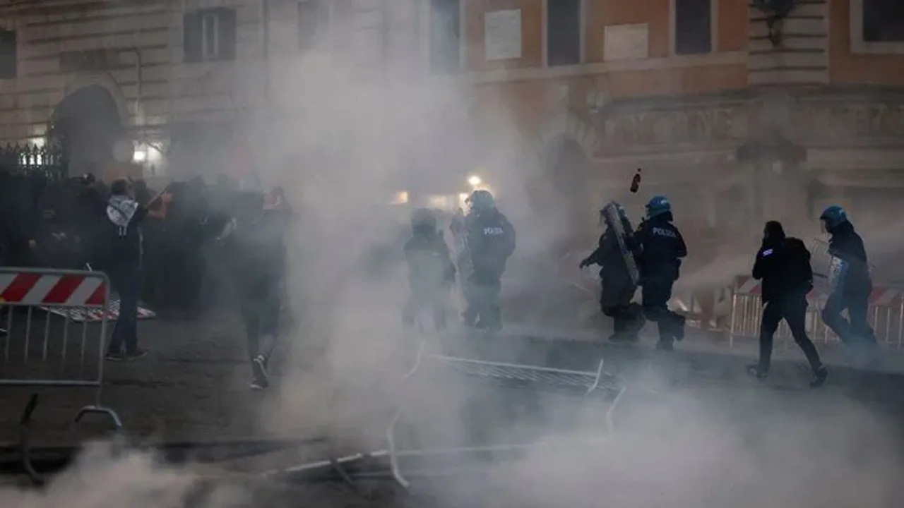 İtalya-İsrail maçı öncesi sokaklar karıştı: Güvenlik önlemleri artırıldı - 1İtalya polisi gösterileri kontrol altında tutmaya çalışıyor.