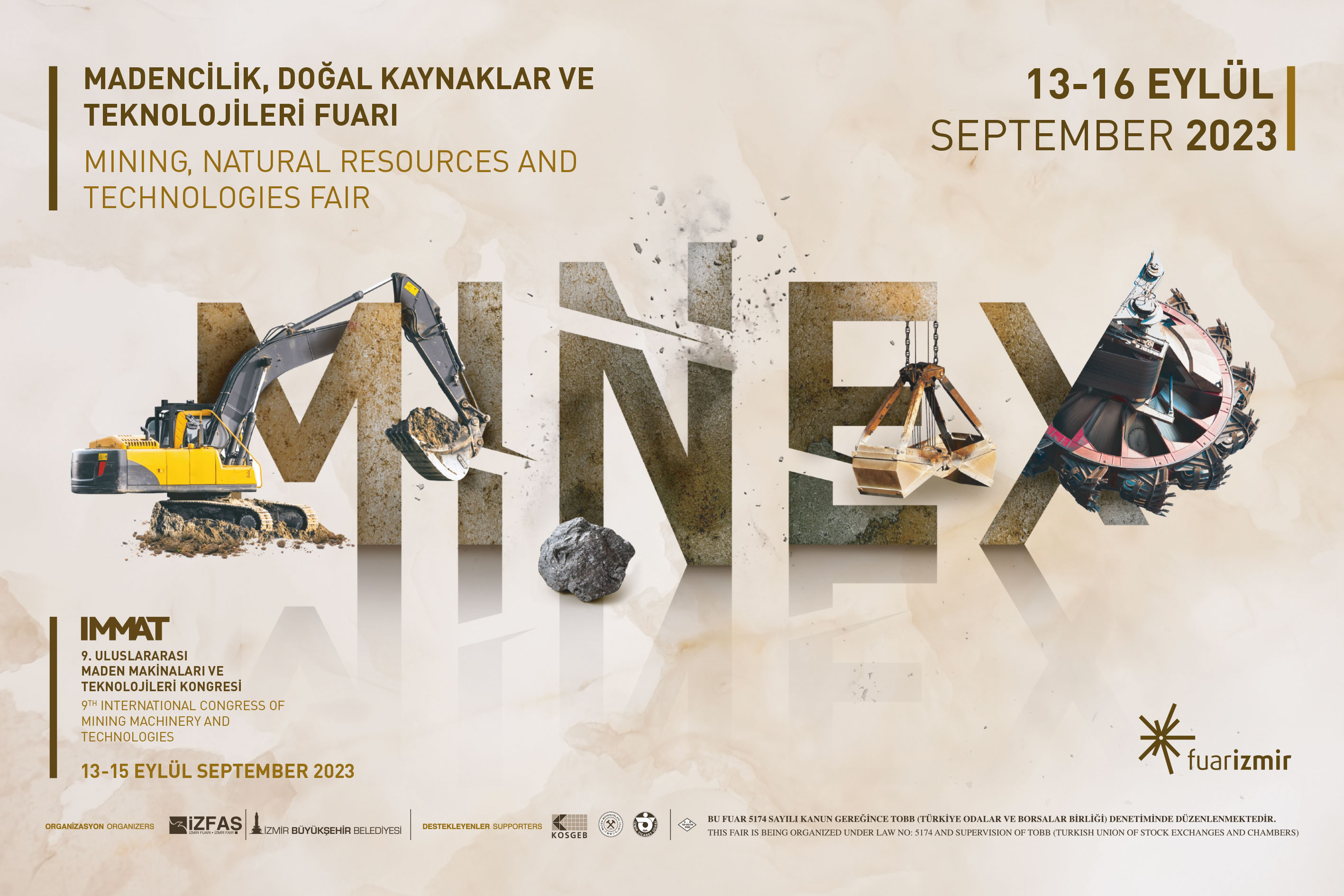 İzmir Büyükşehir Belediyesi ev sahipliğinde İZFAŞ tarafından TMMOB Maden Mühendisleri Odası işbirliğiyle düzenlenen MINEX – Madencilik, Doğal Kaynaklar ve Teknolojileri Fuarı’nın 10.’su için çalışmalar sürüyor. MINEX Fuarı, 13-16 Eylül 2023 tarihleri arasında fuarizmir’de gerçekleşecek. Fuarda; maden bulma, çıkarma işlemlerinde kullanılan son teknoloji dev makineler, iş makineleri, teknolojik yenilikler, yangınları önceden haber veren sistemler gibi birbirinden önemli ürünler, sektör profesyonelleri ile bir araya gelecek. MINEX’e Amerika Birleşik Devletleri, Almanya, Avusturya, Çin, İsviçre, Çekya, Finlandiya, İsveç, Polonya, Rusya gibi dünyanın dört bir yanındaki ülkelerden katılımcı ve profesyonel ziyaretçilerin gelmesi bekleniyor.