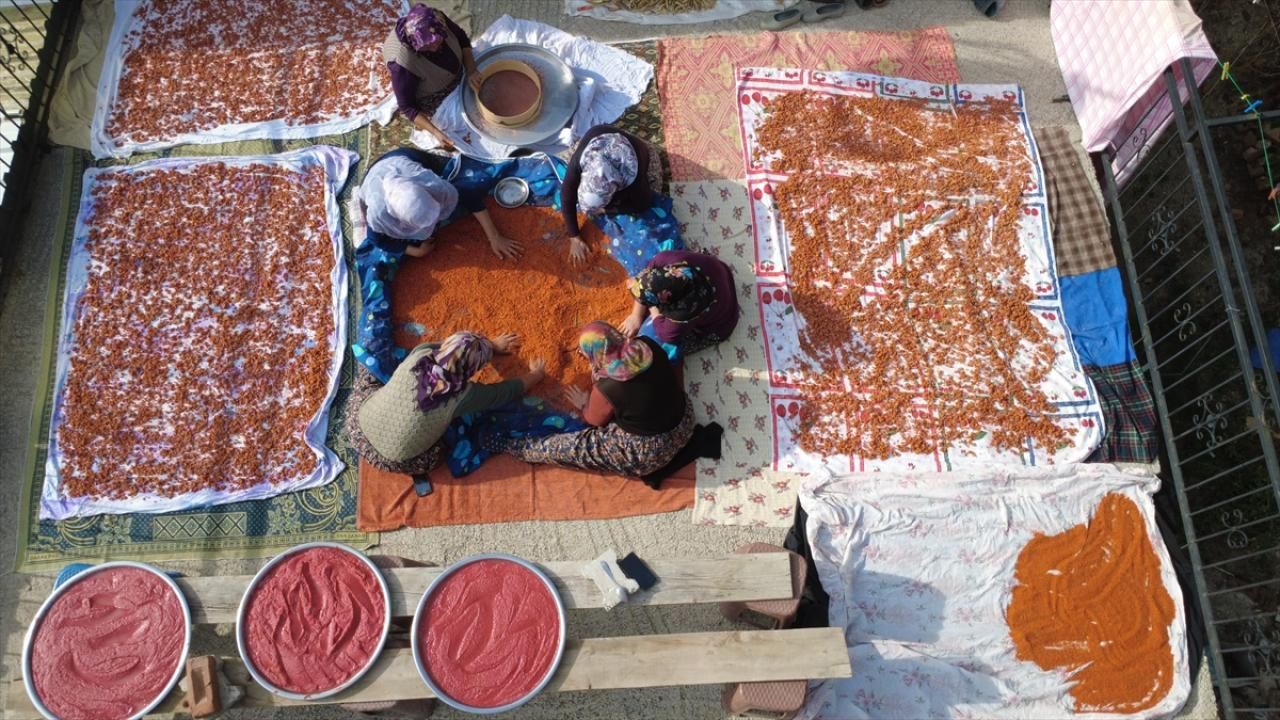 İlçeye bağlı Akdere Mahallesi'nde kadınlar, kış mevsiminin yaklaşmasıyla imece geleneğini sürdürerek kışlık yiyeceklerini hazırlamaya başlıyor.