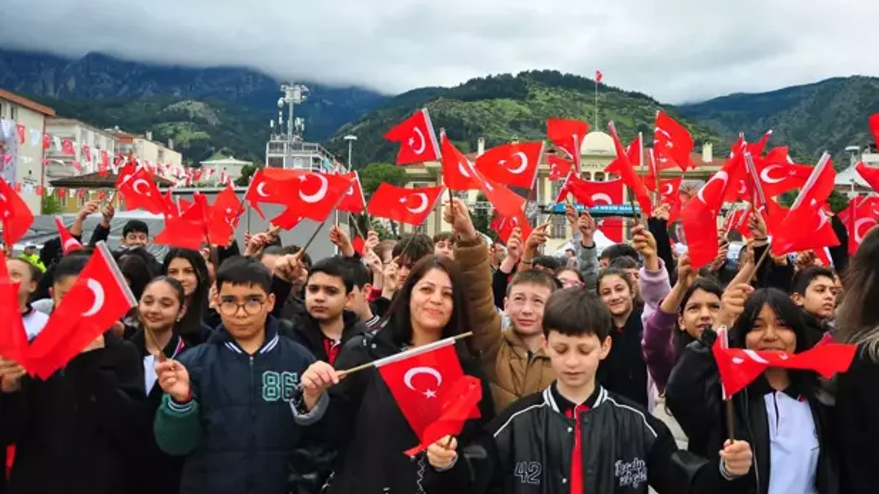 Öğrencilerin şiir okuması ve koro halinde şarkılar seslendirmesiyle devam eden kutlama programı, Türk bayraklarıyla gerçekleştirilen gösterinin ardından sona erdi.