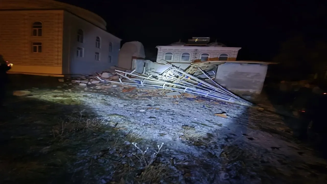 Çıkrıkçı Mahallesi Camisinin minaresi, etkili olan fırtına nedeniyle devrildi.