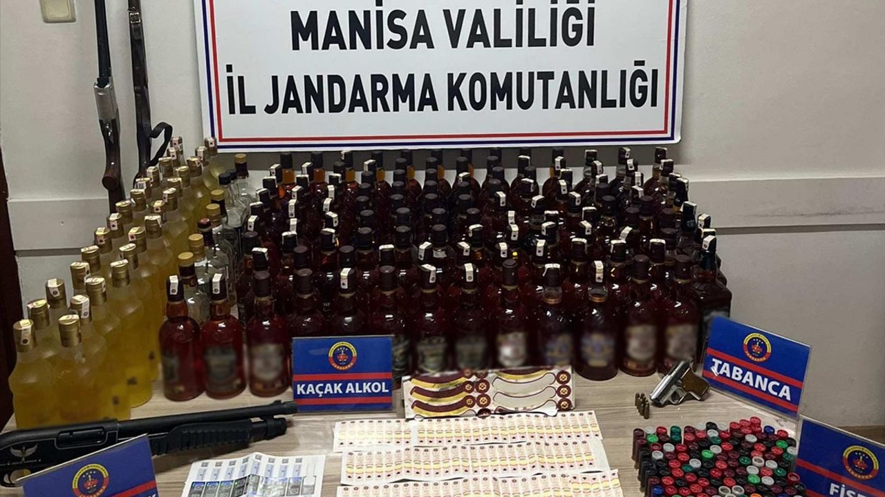 Belirlenen adrese düzenlenen operasyonda 138 şişe sahte içki, 7 boş şişe, 109 sahte bandrol ve 21 viski etiketi ile 1 ruhsatsız tabanca, 3 ruhsatsız av tüfeği, 137 av tüfeği fişeği ele geçirildi.