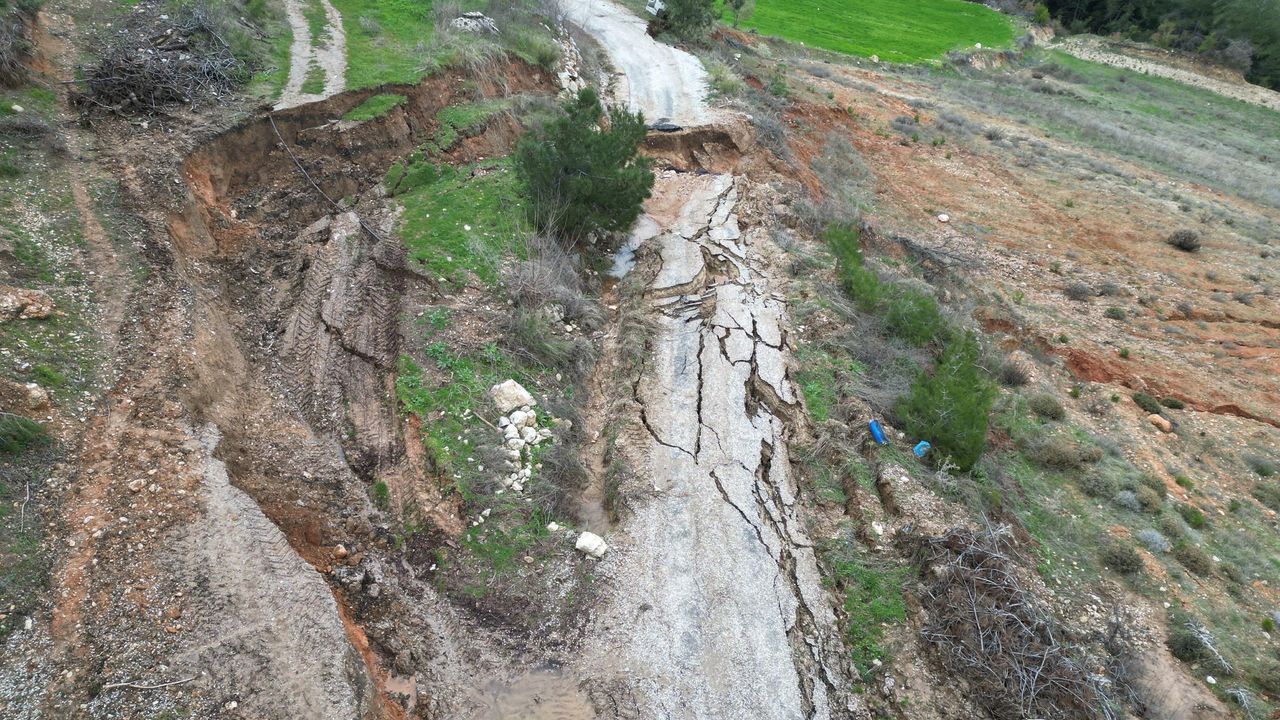 Yetkililer, olası risklere karşı uyarı levhaları yerleştirip yolu ulaşıma kapattı.