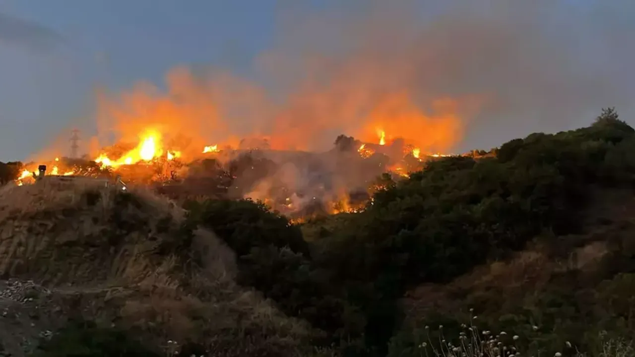 Derbent Mahallesi'nde zeytin ağaçları ve üzüm bağlarının bulunduğu zirai alanda henüz bilinmeyen nedenle yangın çıktı.