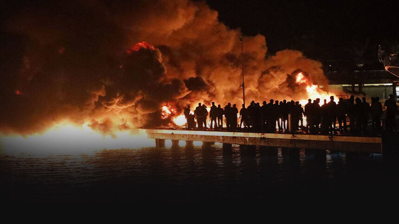 Yangında motoryatlardan 7'si batarken, birinde hasar meydana geldi.