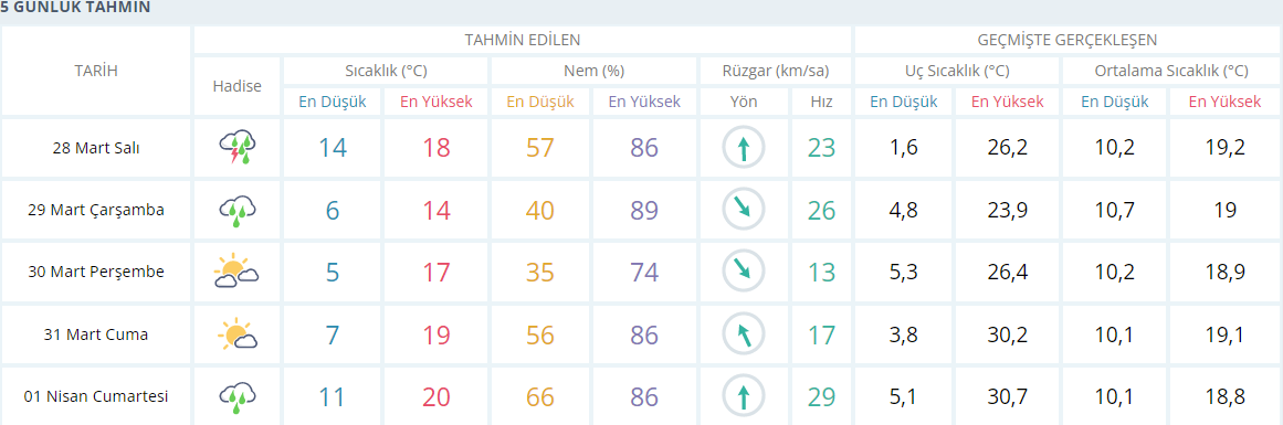 İşte İzmir'in beş günlük hava tahmini raporu;