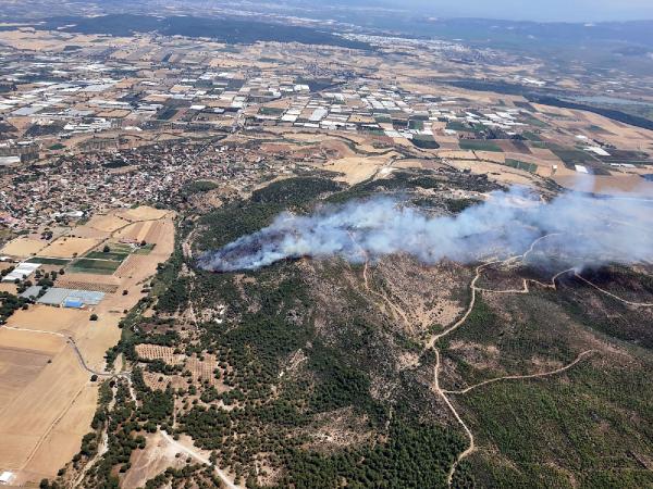 İzmir'in Menderes ilçesindeki ormanlık alanda çıkan yangın, havadan ve karadan müdahaleyle kontrol altına alındı.