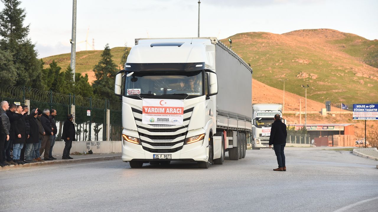 Menemen Belediyesi yardım tırlarından 4’ü daha yola çıktı,gönüllülerin yardımı ve Menemenlilerin desteği ile depremzedelerin ihtiyaç duyduğu malzemeler afet bölgelerine gönderiliyor . Böylelikle içerisinde yiyecek, giyecek, battaniye, yatak, yorgan, bebek bezi, bebek maması, tıbbi malzeme, çok sayıda ısıtıcı ve su gönderilen tır sayısı 20’ye yükseldi. Menemen Belediye Arama Kurtarma Ekibi (MAKUR) da çalışmalara destek vermek için Osmaniye’den Gaziantep’e geçti.