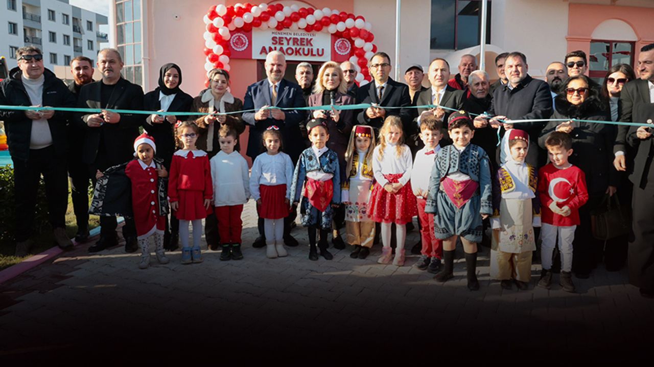 Eğitime yaptığı örnek yatırımlarla dikkatleri üzerine çeken Menemen Belediyesi, bu alandaki hizmetlerini yepyeni bir açılışla sürdürdü. Başkan Aydın Pehlivan'ın göreve gelmesiyle birlikte ilk olarak Ulukent Anaokulu açılışının ardından, lise ve üniversite sınavlarına hazırlıkta artık bir marka haline gelen MEBGEM'in şube sayısını 3’e çıkarıp kapasitesini de artıran, 8 ve 12. sınıf öğrencilerine son üç yılda 30 bin adet dijital eğitim paketi dağıtan, ilkokul 1. sınıftan lise son sınıfa kadar kırtasiye desteği sağlayıp, üniversiteyi kazanan gençlerden yeni mezunlara kadar yükseköğretimde okuyan tüm Menemenli gençlere maddi destek sağlayan Menemen Belediyesi, Seyrek'te yeni bir anaokulu açtı.