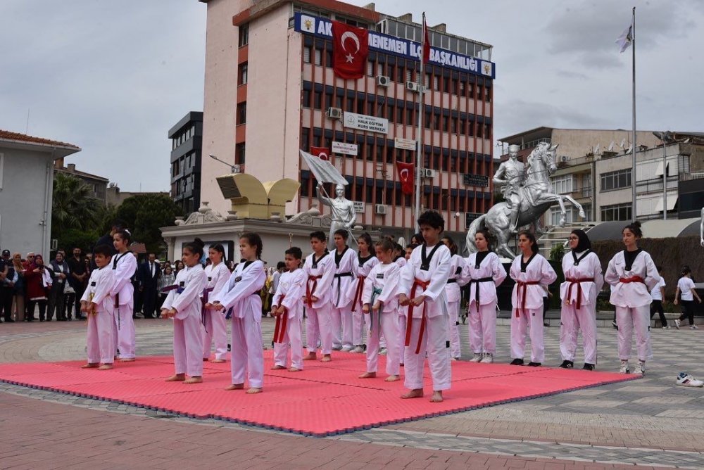 Atatürk anıtına çelenk sunumunun ardından saygı duruşu, İstiklal Marşımızın okunması ile başlayan tören; Menemen İlçe Gençlik ve Spor Müdür Vekili Mehmet Yüzücü’nün günün anlam ve önemini anlatan konuşmasıyla devam etti.