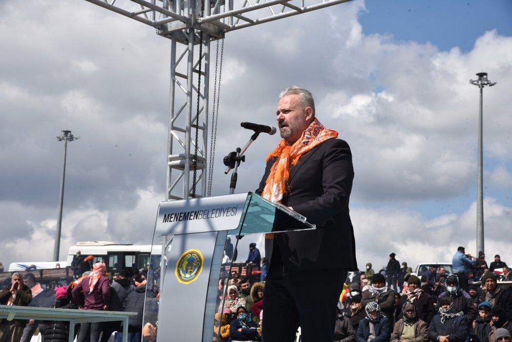 Şimdi de şu an gösterilerimize ev sahipliği yapan Türkelli Arena’nın da içinde bulunduğu 35 dönümlük hazine arazisini, Çevre, Şehircilik ve İklim Değişikliği Bakanımızla yaptığımız istişareler sonucu belediyemize kazandırmış bulunmaktayız. Artık gördüğünüz bu alan belediyemizin, yani Menemenli hemşerilerimin oldu. Hepimize hayırlı uğurlu olsun.