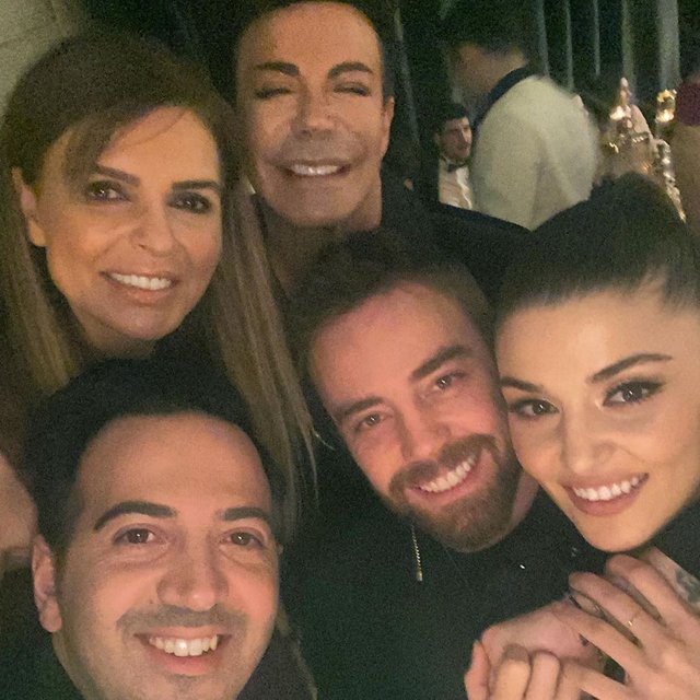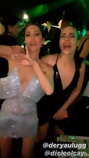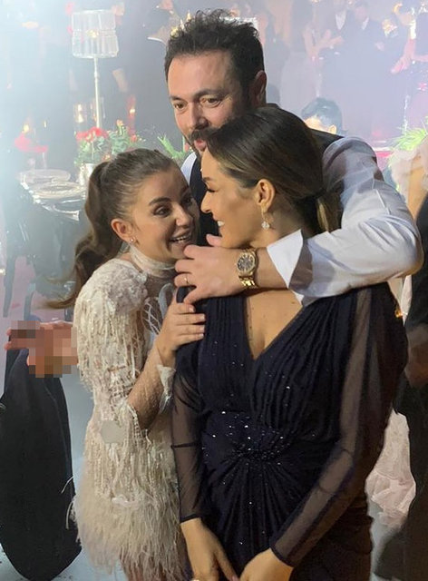 Oyuncu Hande Erçel ise, derin dekolteli ve siyah parıltılı mini elbisesiyle geceye damga vurdu.