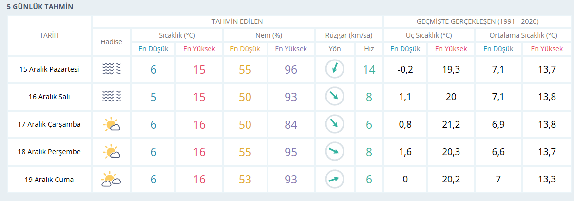Hava sıcaklıklarının hafta boyunca mevsim normallerinin üzerinde seyretmesi öngörülüyor. En düşük sıcaklıkların 5-6 derece civarında olması beklenirken, gündüz saatlerinde sıcaklıklar 14-16 derece bandında hissedilecek. Haftanın bazı günlerinde ise termometrelerin 18 dereceye kadar çıkacağı tahmin ediliyor. İzmir’de ılıman hava koşullarının hafta boyunca etkisini sürdürmesi bekleniyor.