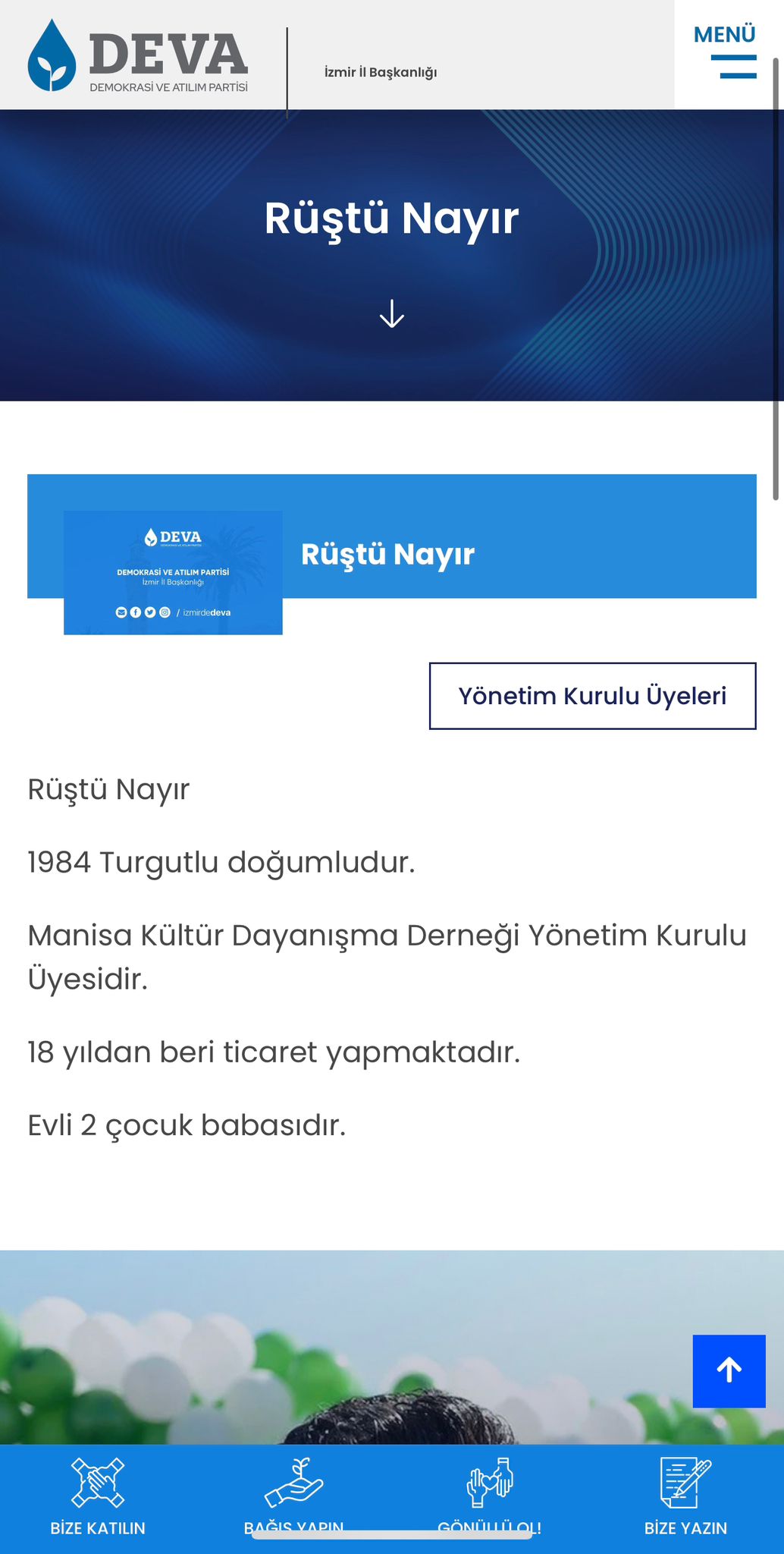 MHP İzmir İl Yönetimi Listesinde yer alan Rüştü Nayır'ın DEVA Partisi sitesinde ye olarak yer alması dikkat çekti.
