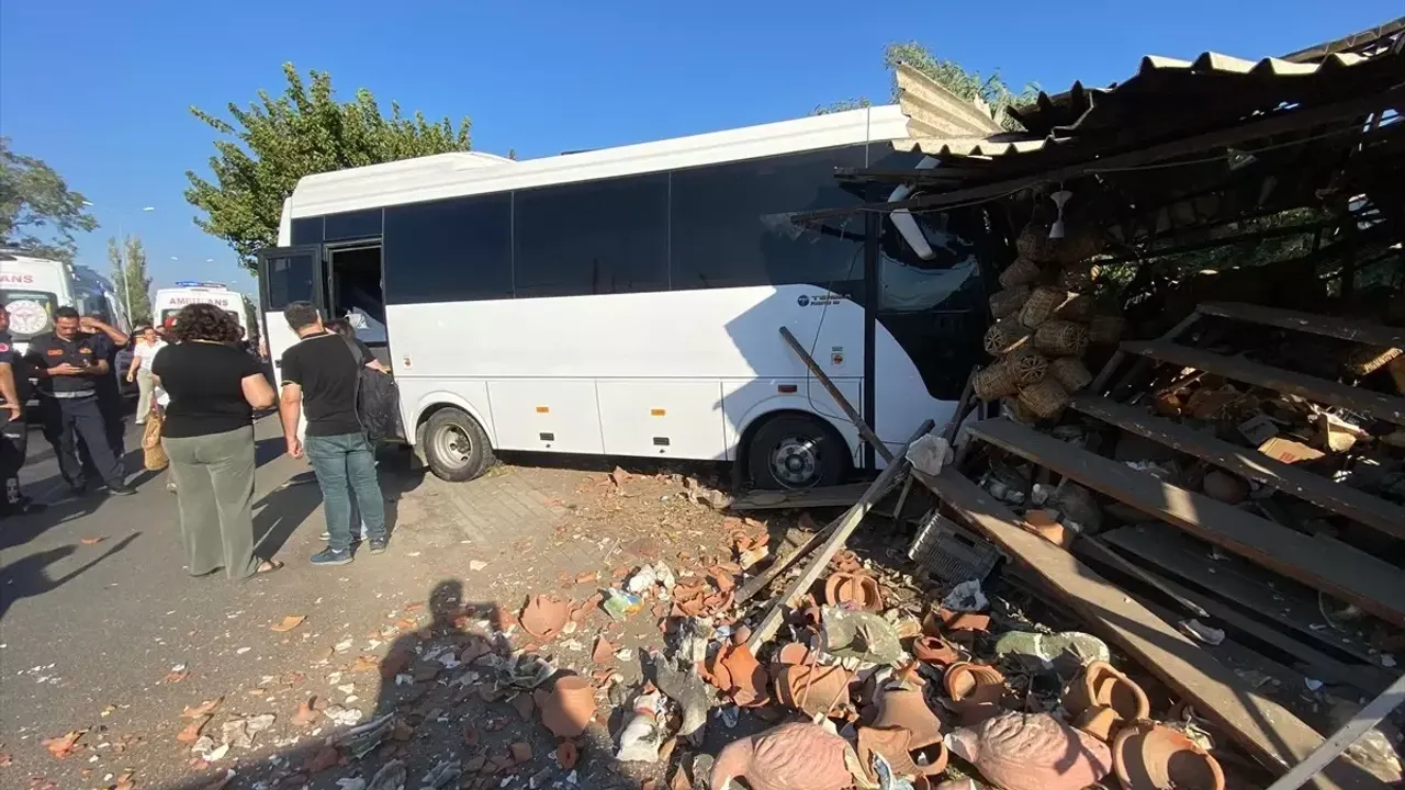 H.Y'nin kullandığı öğrencileri taşıyan 09 P 7783 plakalı midibüs, sürücüsünün direksiyon hakimiyetini kaybetmesi sonucu Atça Mahallesinde yol kenarında çömlek satışı yapan iş yerine çarptı.
