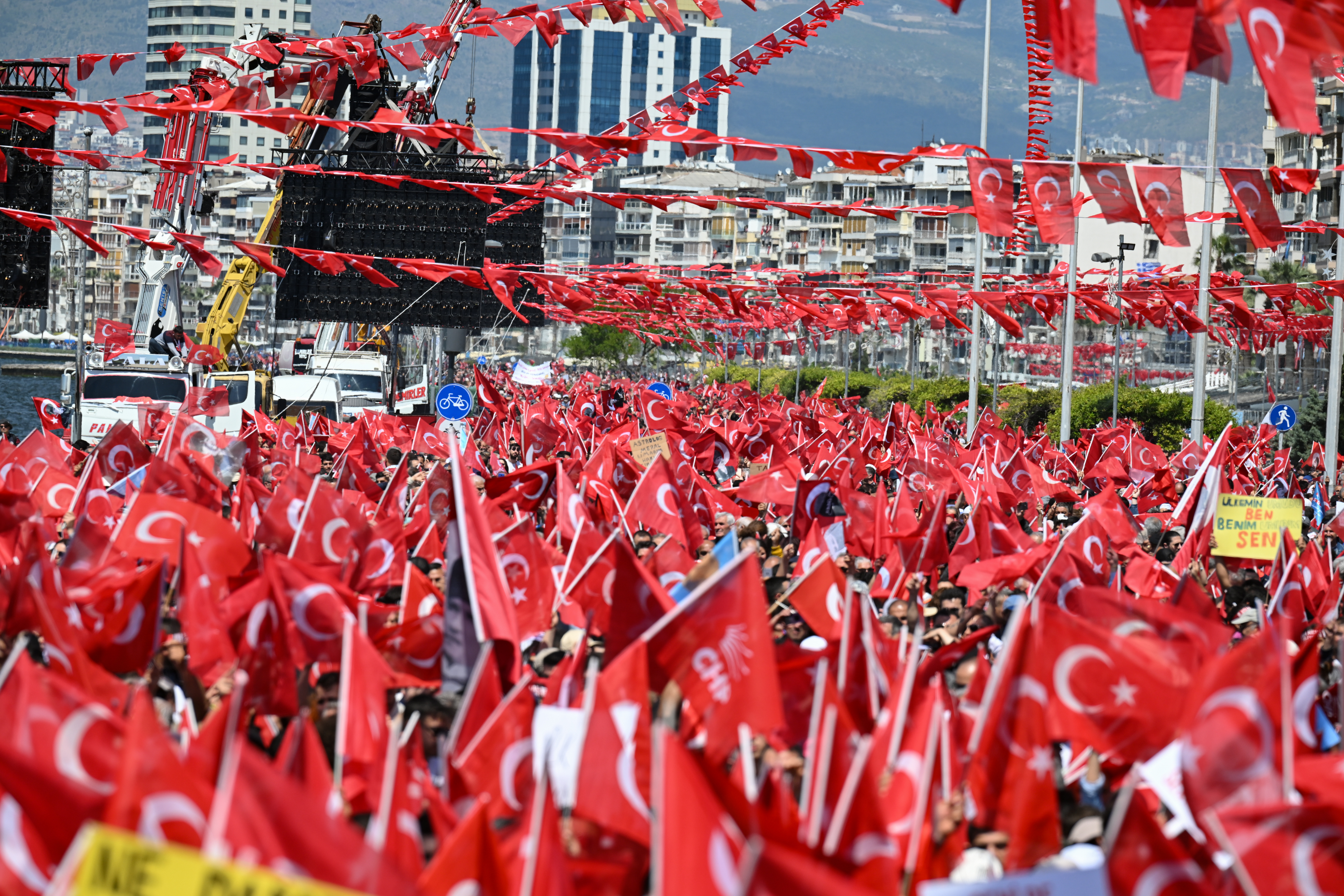 Dersime çalıştım, İzmir’de ilk kez sandığa gidip oy kullanacak 215 bin 650 genç var. Bu seçimler gençlerin kendilerini göstermeleri gerek seçimlerdir, Demokrasiyi inşa etme seçimidir. Bu seçimiler kadın erkek eşitliğini sağlama seçimi kavga değil barışma, kucaklaşma seçimidir, ayrışma değil. 5 Milyon 300 bin genç ilk kez sandığa gidecek ve onlar tarihe bir not düşecekler; ileride anlatacaklar torunlarına otoriter bir hükümet, tek adam vardı, bir tweet atarken bile anne babamız uyarırdı ama ben sandığa gittim ve otoriter hükümeti indirdim, bir oyum dahi önemliydi ben bunu yaptım diyecekler. Hiç meraklanmayın bir şampiyonlar ligi kurduk en yetkili insanlarla çalışıyoruz.