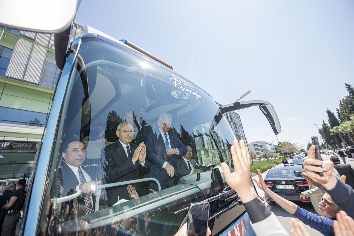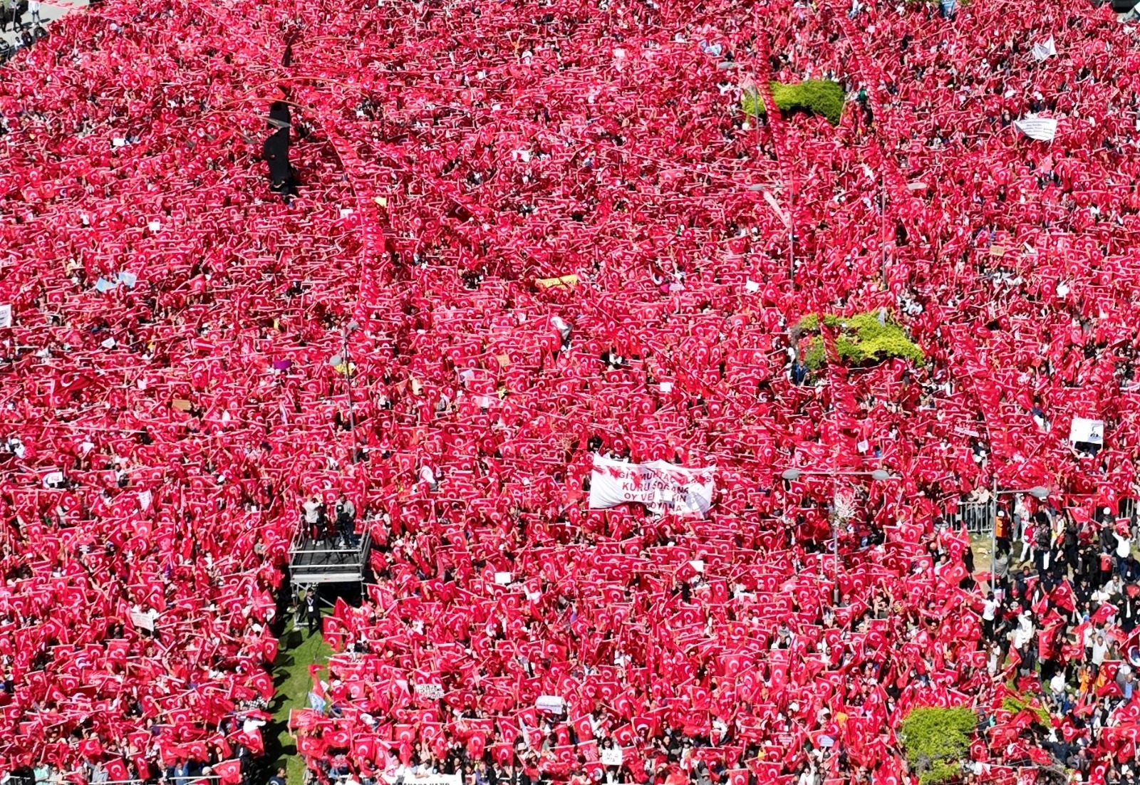 *Platforma bakan binaya Kemal Kılıçdaroğlu'nun karikatür bir fotoğrafı "Ben Kemal geliyorum. Bu işi ilk turda bitirelim" yazısı dikkat çekti.
