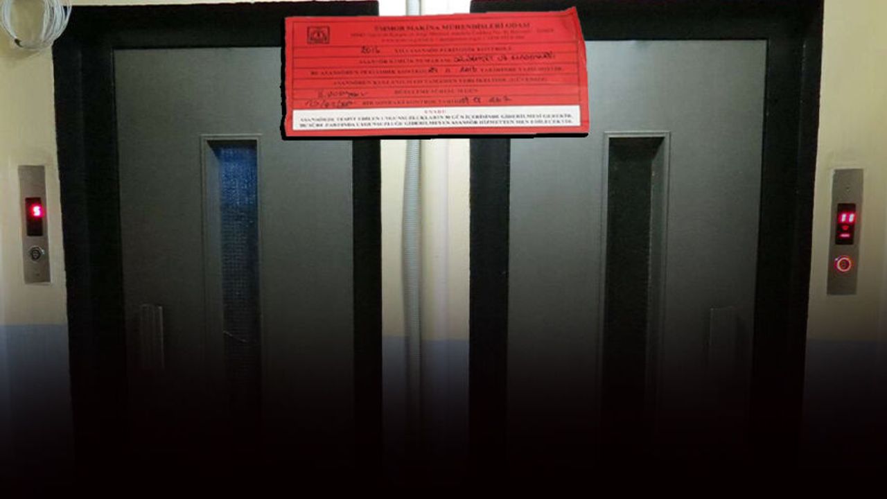 3 bin 555 asansör: Güvenli olmadığı için kullanıma kapatılması gereken kırmızı etiket,