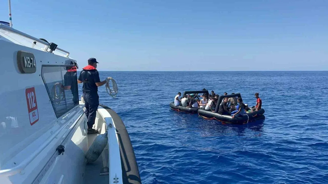 Muğla'nın Marmaris ilçesi açıklarında can salları içerisinde bir grup düzensiz göçmen olduğu ihbarı üzerine bölgeye Sahil Güvenlik botları sevk edildi. Ekipler, Yunanistan unsurları tarafından Türk kara sularına geri itilen 18’i çocuk 46 düzensiz göçmeni sağ olarak kurtardı.