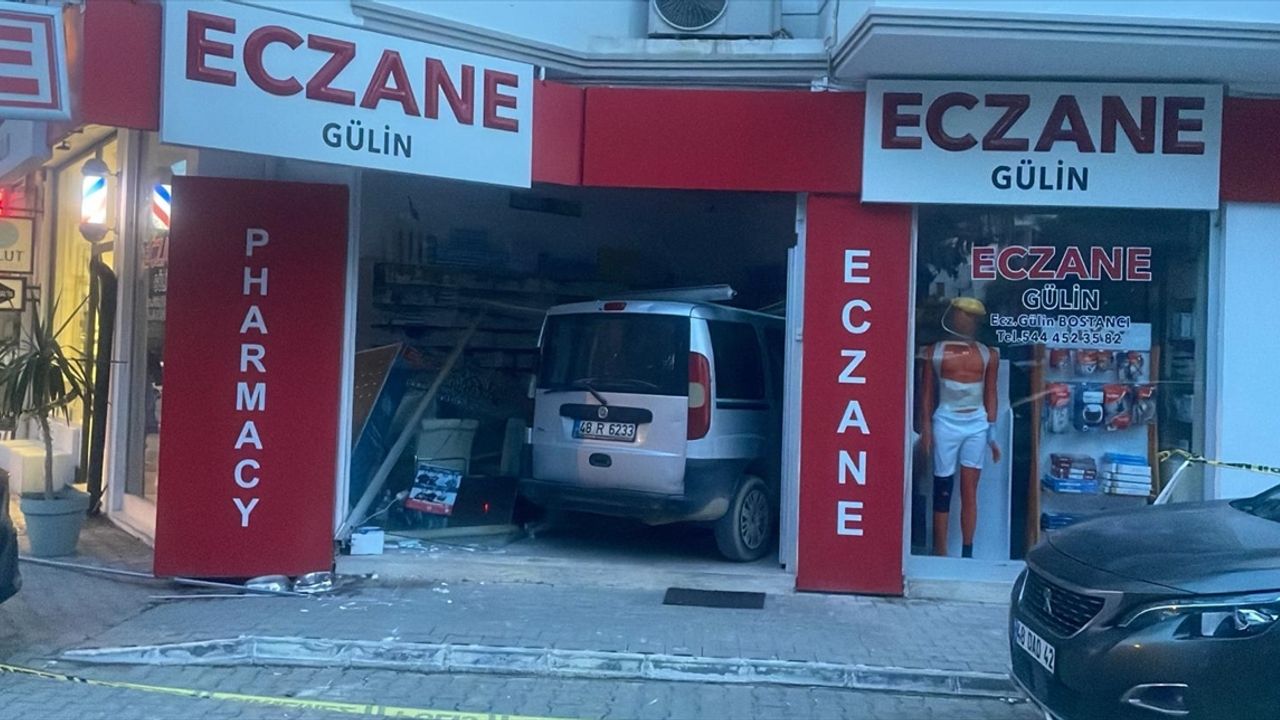İskele Mahallesi'nde B.K'nin park etmeye çalışırken fren yerine gaza bastığı 48 R 6233 plakalı hafif ticari araç, bir eczanenin vitrinine çarptı.